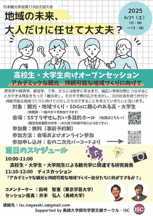 なお、第118回全国大会研究報告会への参加は日本観光学会員に限られますが、公開シンポジウムについては一般の方の参加も可能です。
